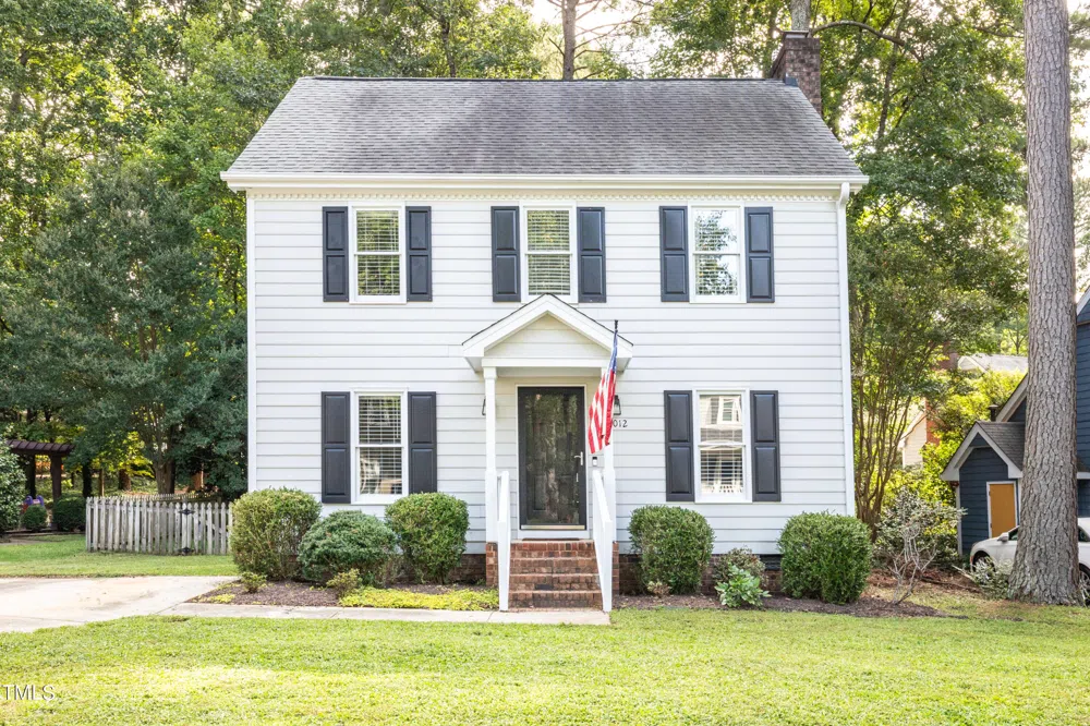 You're invited to indulge one of Raleigh's most celebrated and well-established, amenity-rich communities - Brittany Woods! Nestled in the heart of North West Raleigh between Lynn and Leesville, this charming colonial boasts impeccable improvements and classic characteristics that are guaranteed to inspire the most auspicious of buyers! Refreshed kitchen with sleek stainless appliances, single-basin sink, white granite counter tops, custom tile backsplash, and a modern, slimline microwave. Curated light fixtures throughout with ceiling fans in bedrooms. Fenced in, flat back yard with few trees - primed for entertaining! Generous rear deck, spacious storage closet, and welcoming covered front porch. Traditional millwork in formal areas and a cozy wood-burning masonry fireplace! The community offers a pool, tennis courts, pickel ball courts, and a playground. Plus, you're just minutes away from a movie theater, Lowes, Target, local restaurants, and have easy access to Lake Lynn, RDU International Airport, and I-540. Tastefully updated where it counts, this home is ready for new owners. Welcome home!